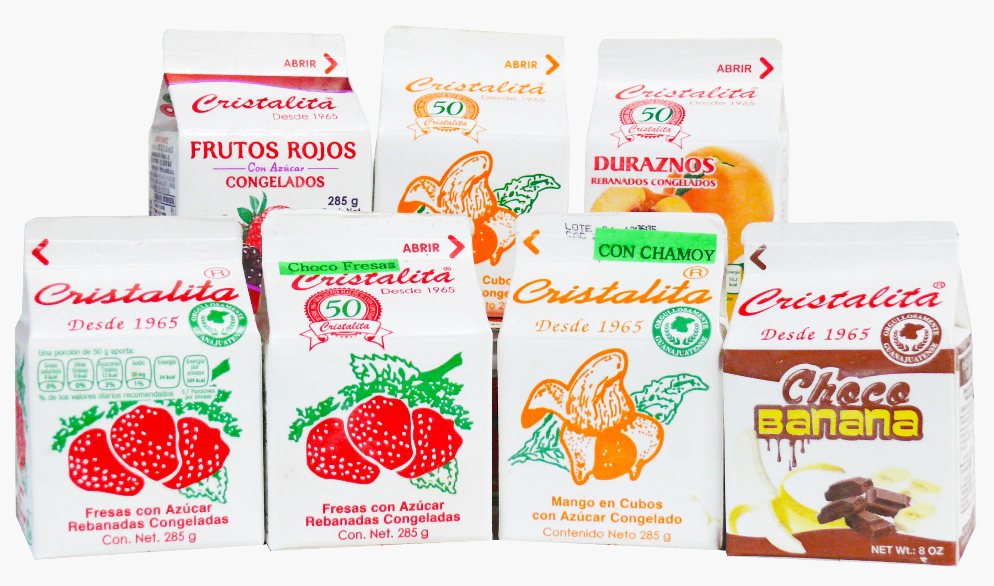 Fresa con/sin azúcar, mango, mango con chamoy, frutos rojos, chocofresa, chocobanana, zarzamora, durazno